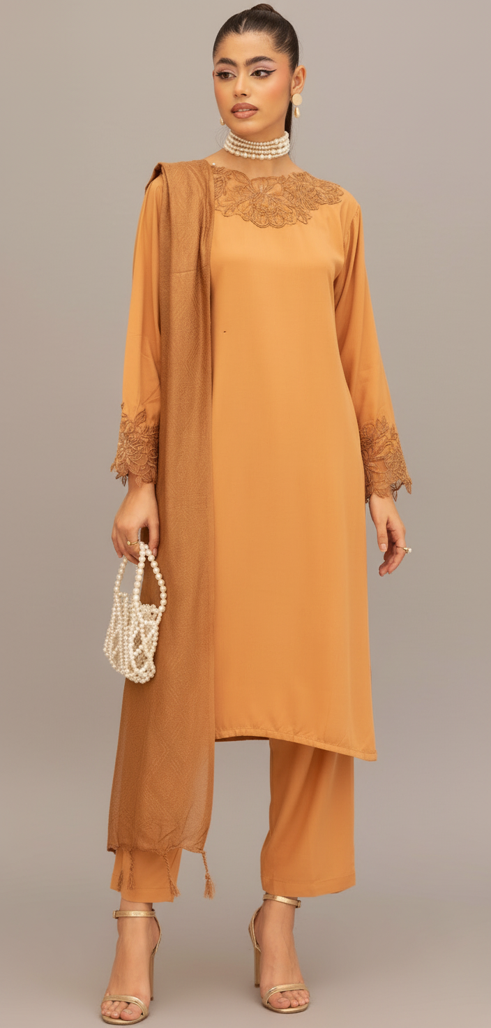 Kameez has threadwork detailing and organza trim on the Neckline and Sleeves