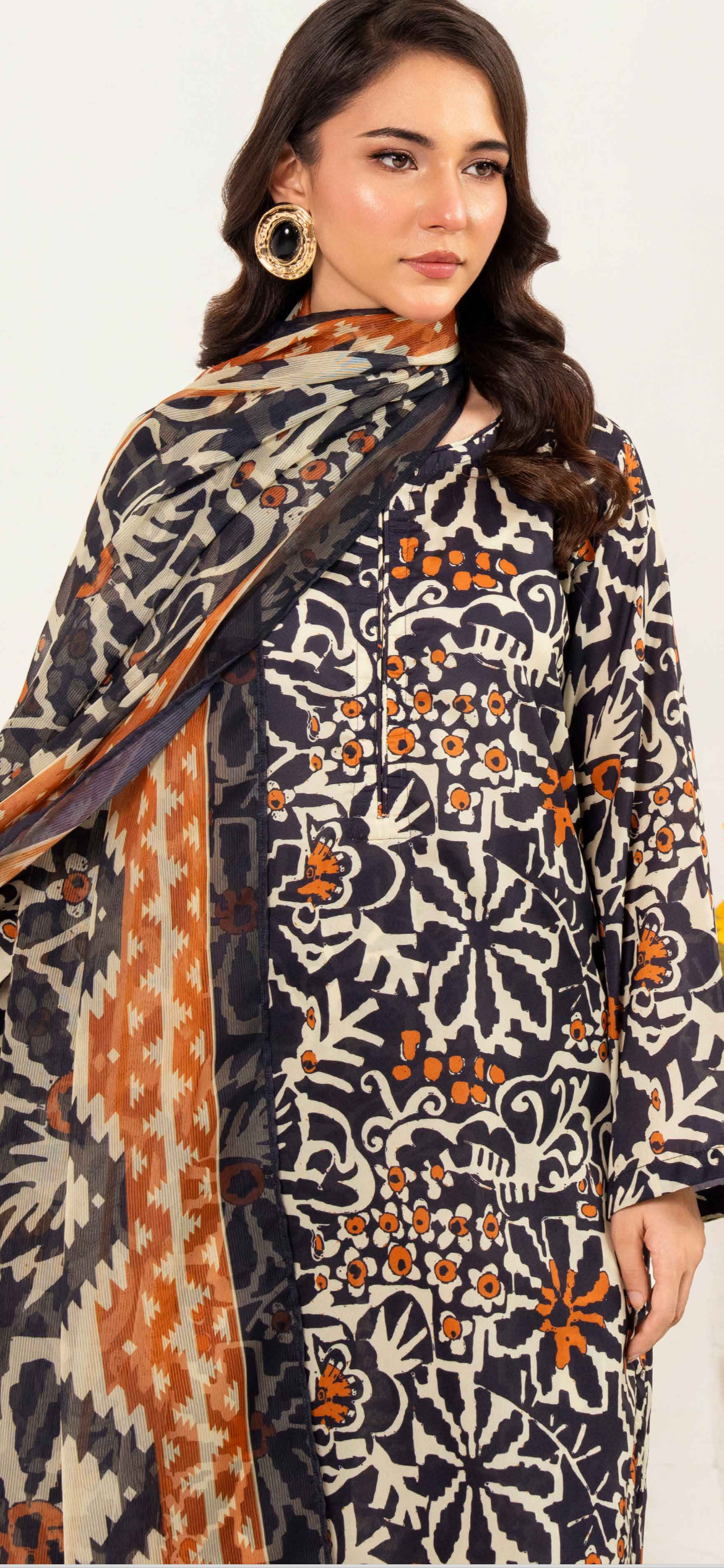 • 3 pc Bright Grip Silk Suit with Printed Scarf.