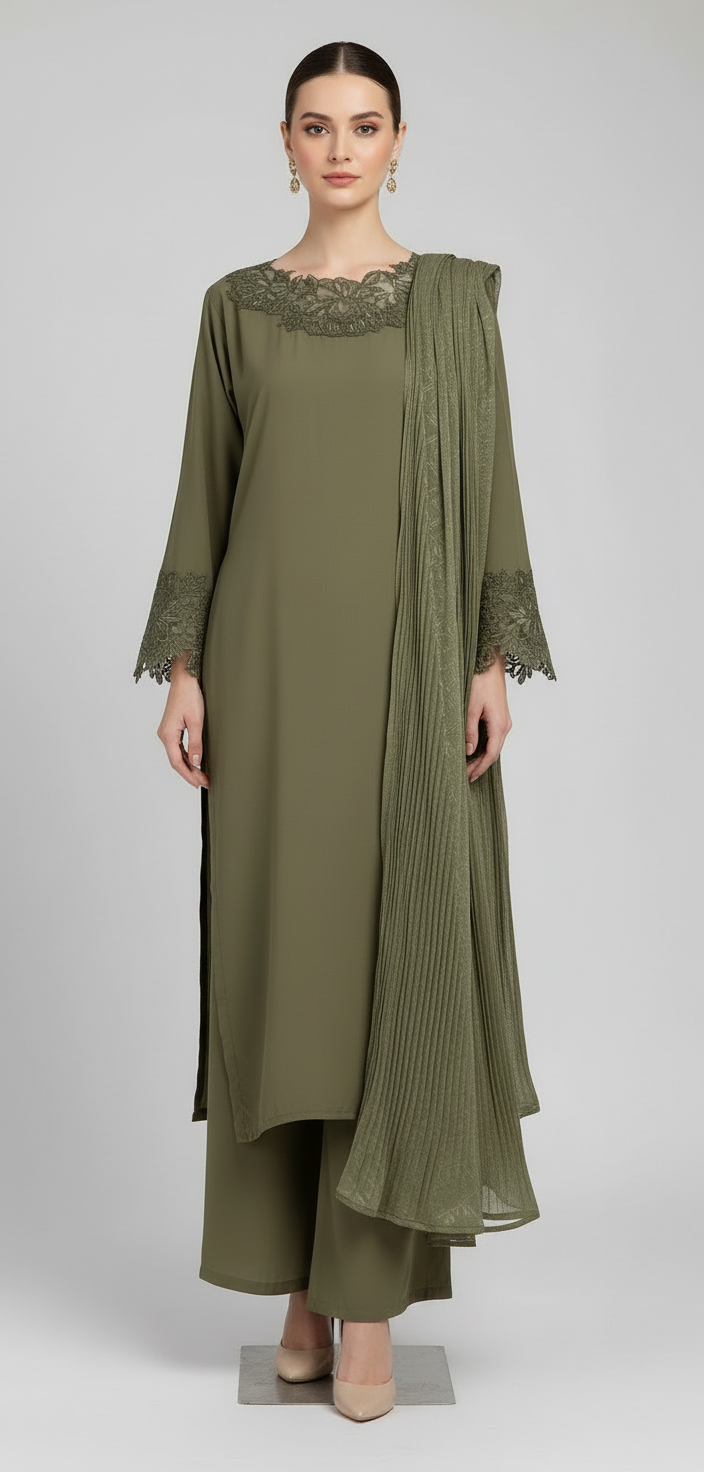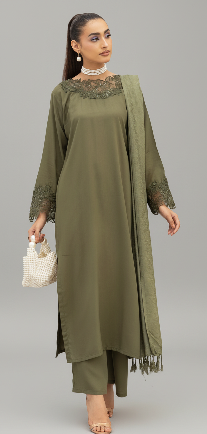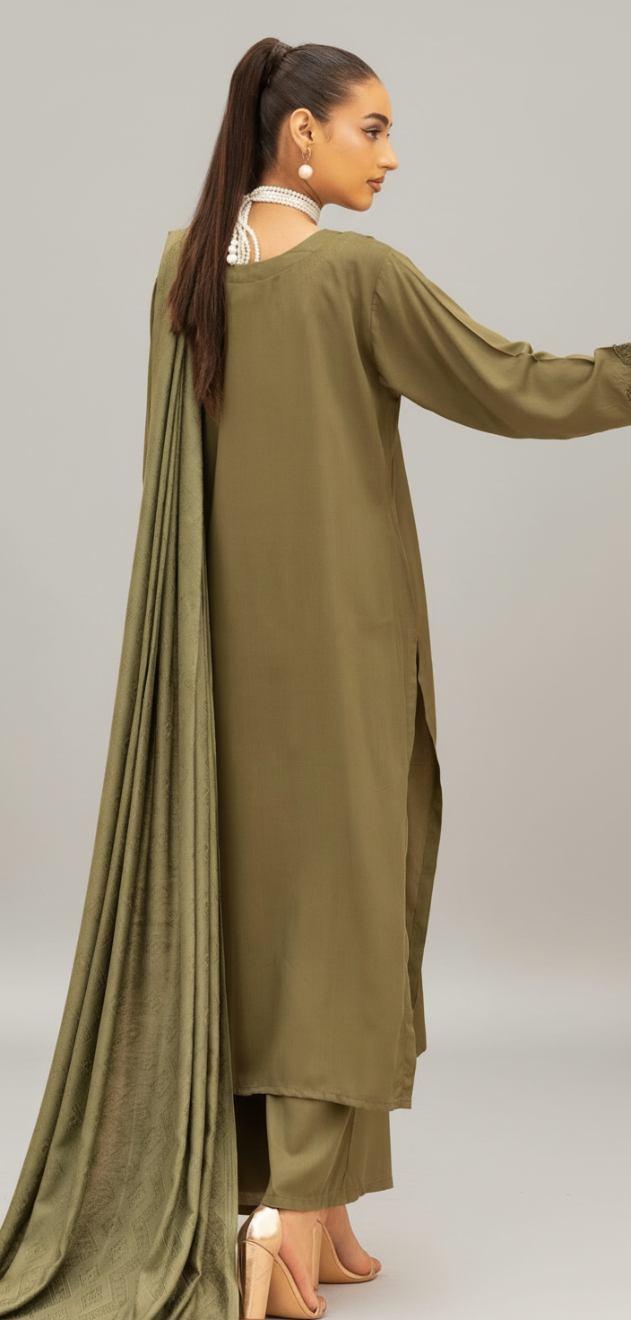• 3 pc Linen Suit with Woolen Shawl