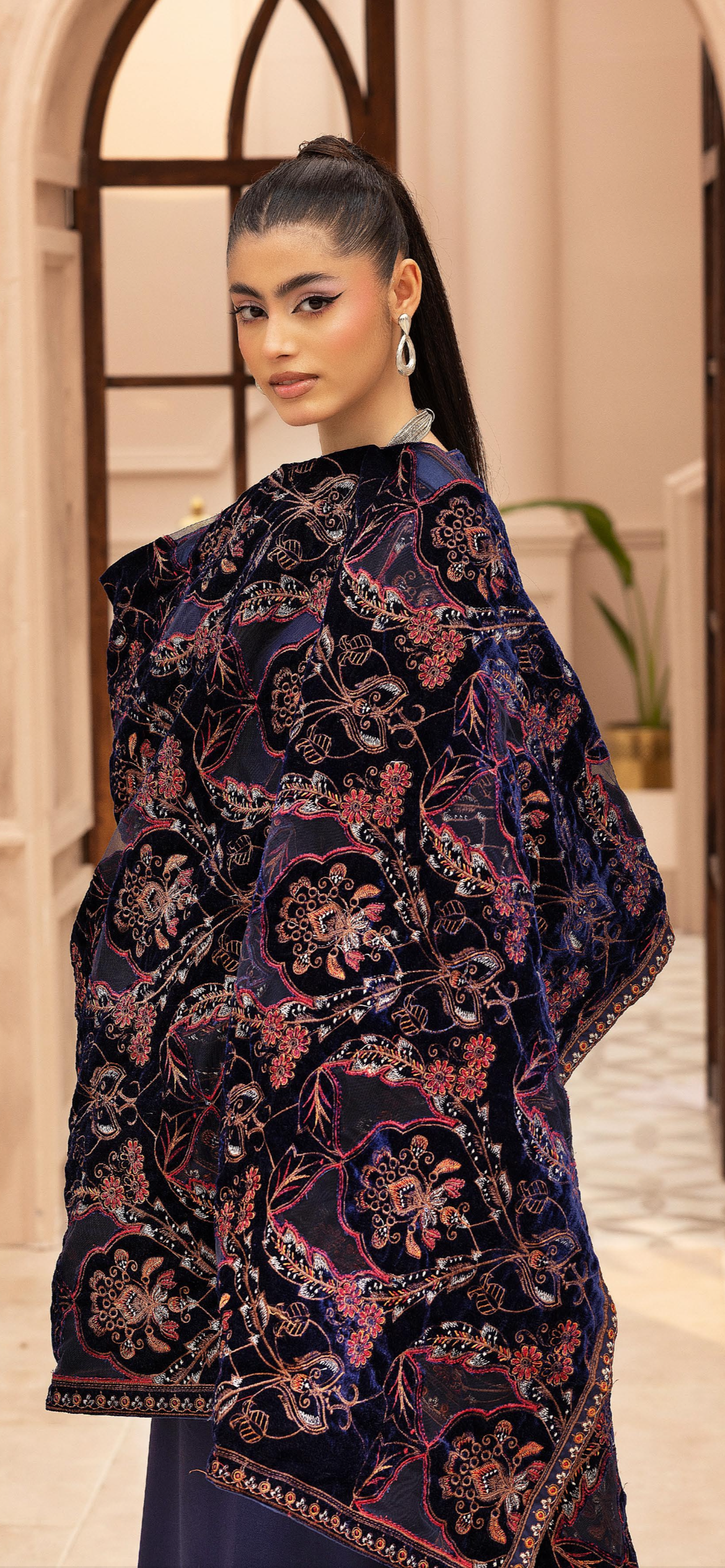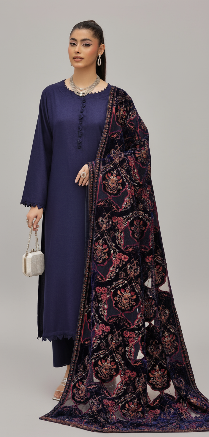Plain Dhanak suit with heavy patchwork/Cutwork Shawl