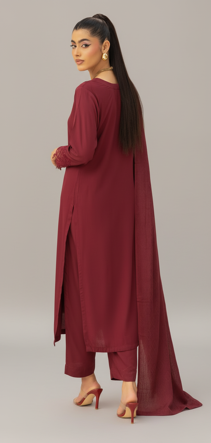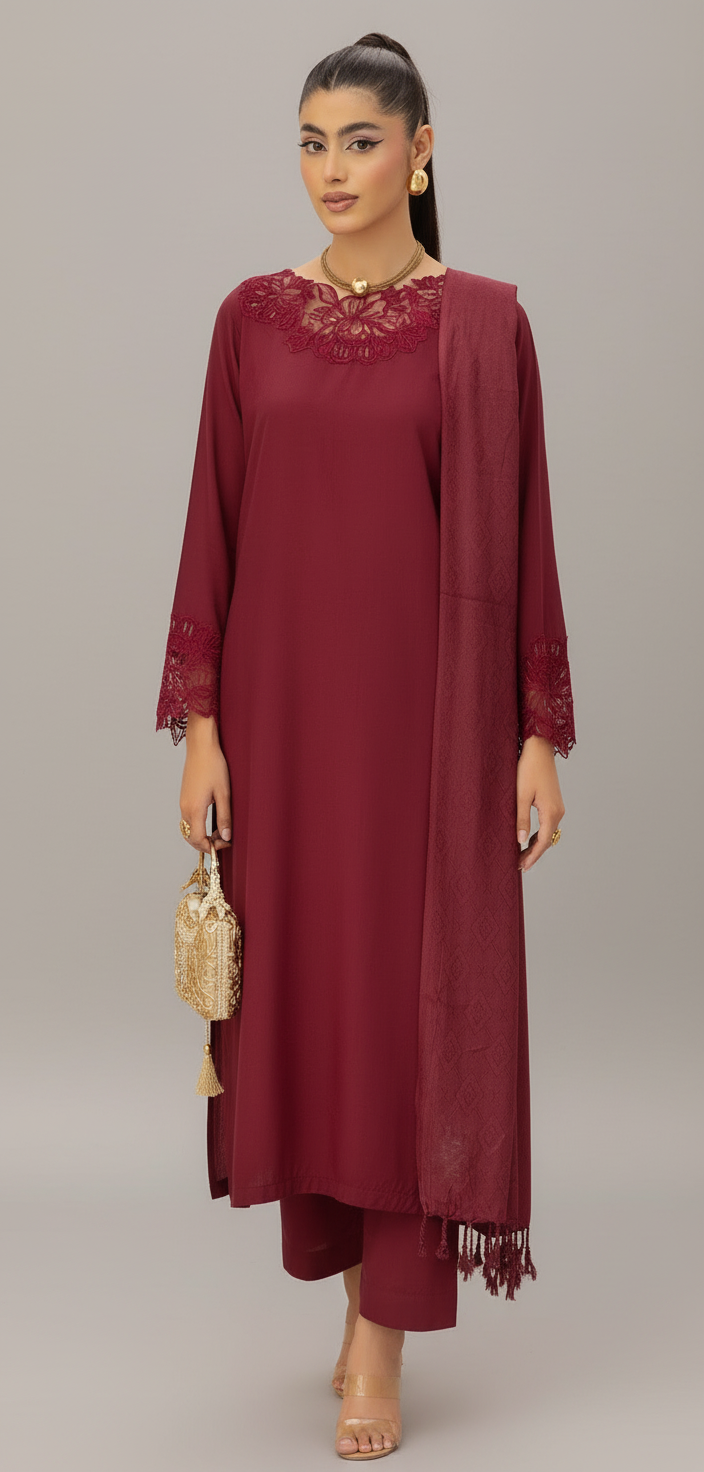 • 3 pc Linen Suit with Woolen Shawl