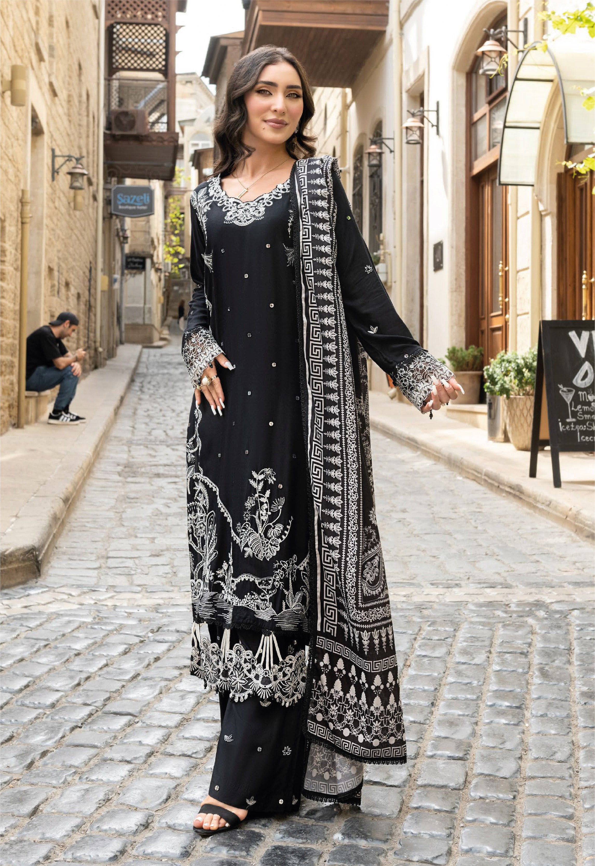 Black 3pc Mother & Daughter Winter Linen Suit