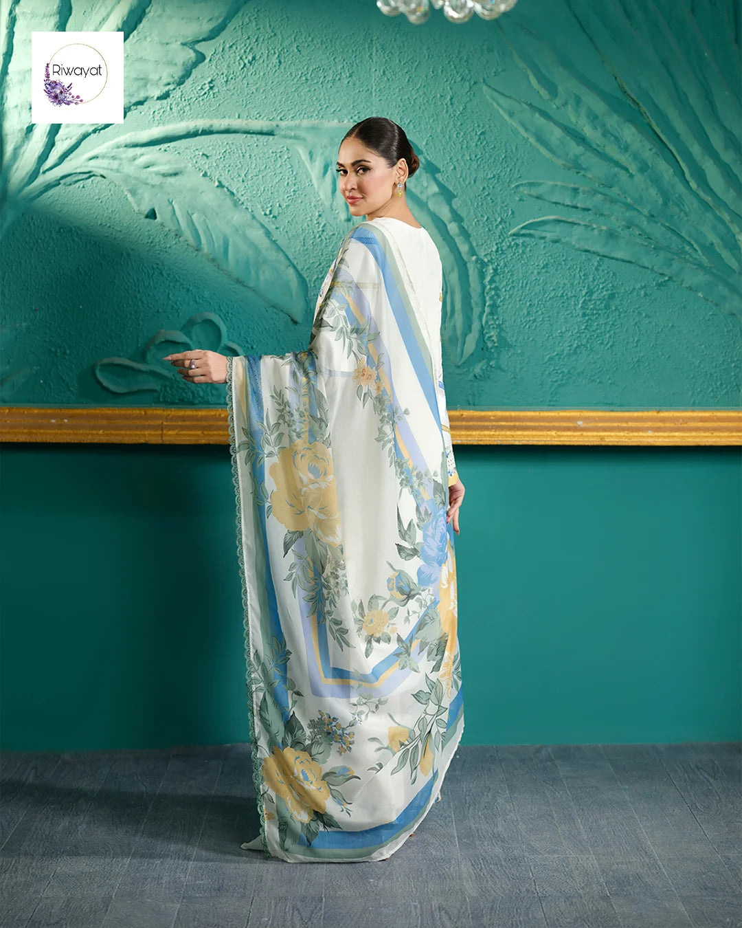Dupatta: The set comes with a premium Silk digital dupatta featuring a floral print and elegant lacework along the edges.