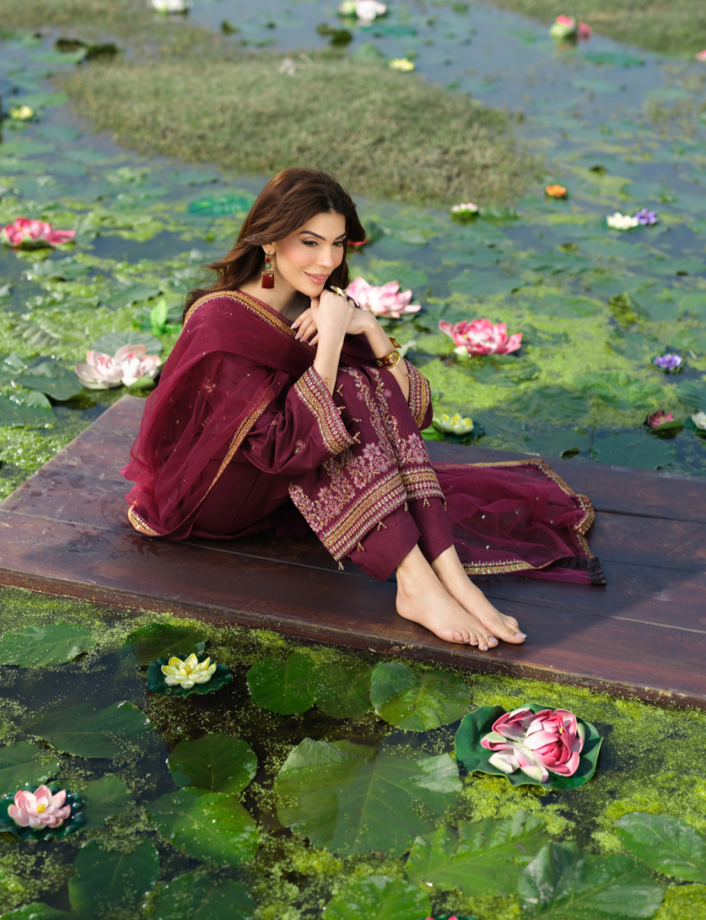 Dupatta: A net dupatta, a vision of elegance, graced with intricate sequin embroidery.