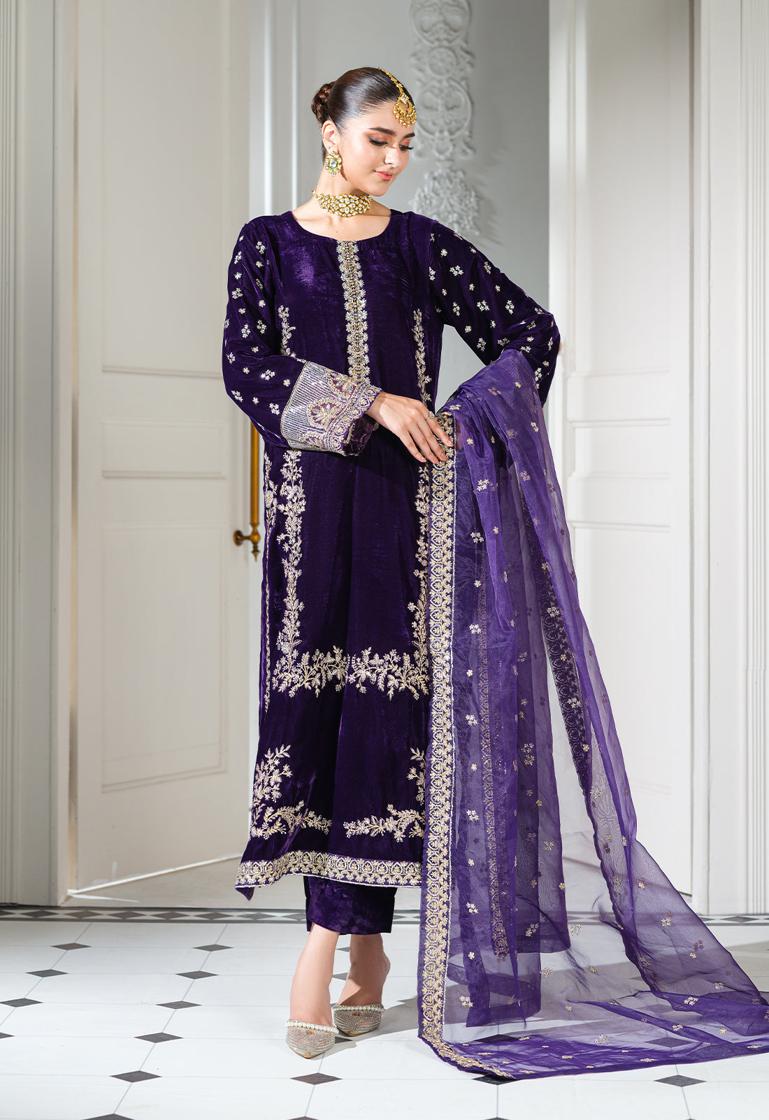 Purple 3pc Velvet Suit with Intricate Diamanté detailing