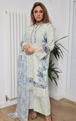 Pale Green 3pc Lawn Suit with Silk Dupatta