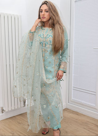 Sage Green Chickenkari Lawn Suit With Diamonte Neckline