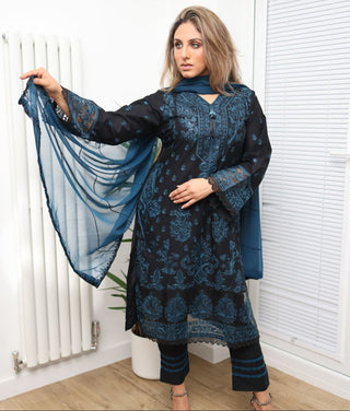 Classic Black & Blue Lawn Suit