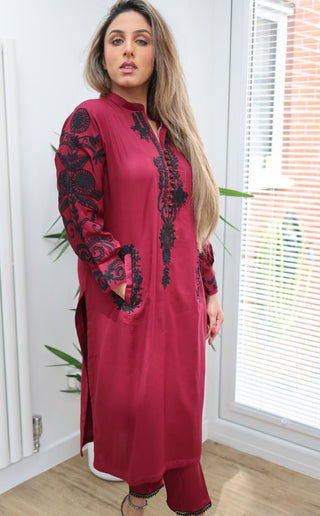 Burgundy 2pc Lawn Dress with Pockets
