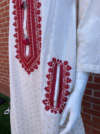 Cream 3pc Readymade Lawn Suit with Contrast Dupatta