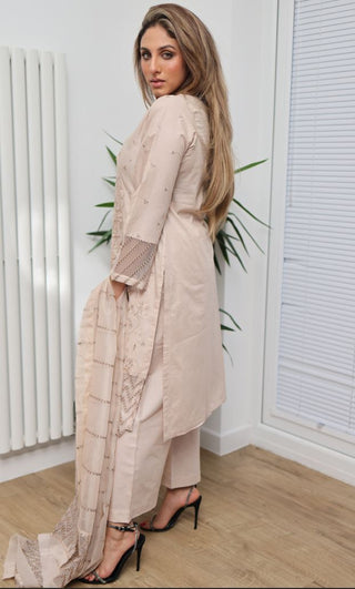 Mocha 3pc Lawn Suit, with Organza Chikankari Borders