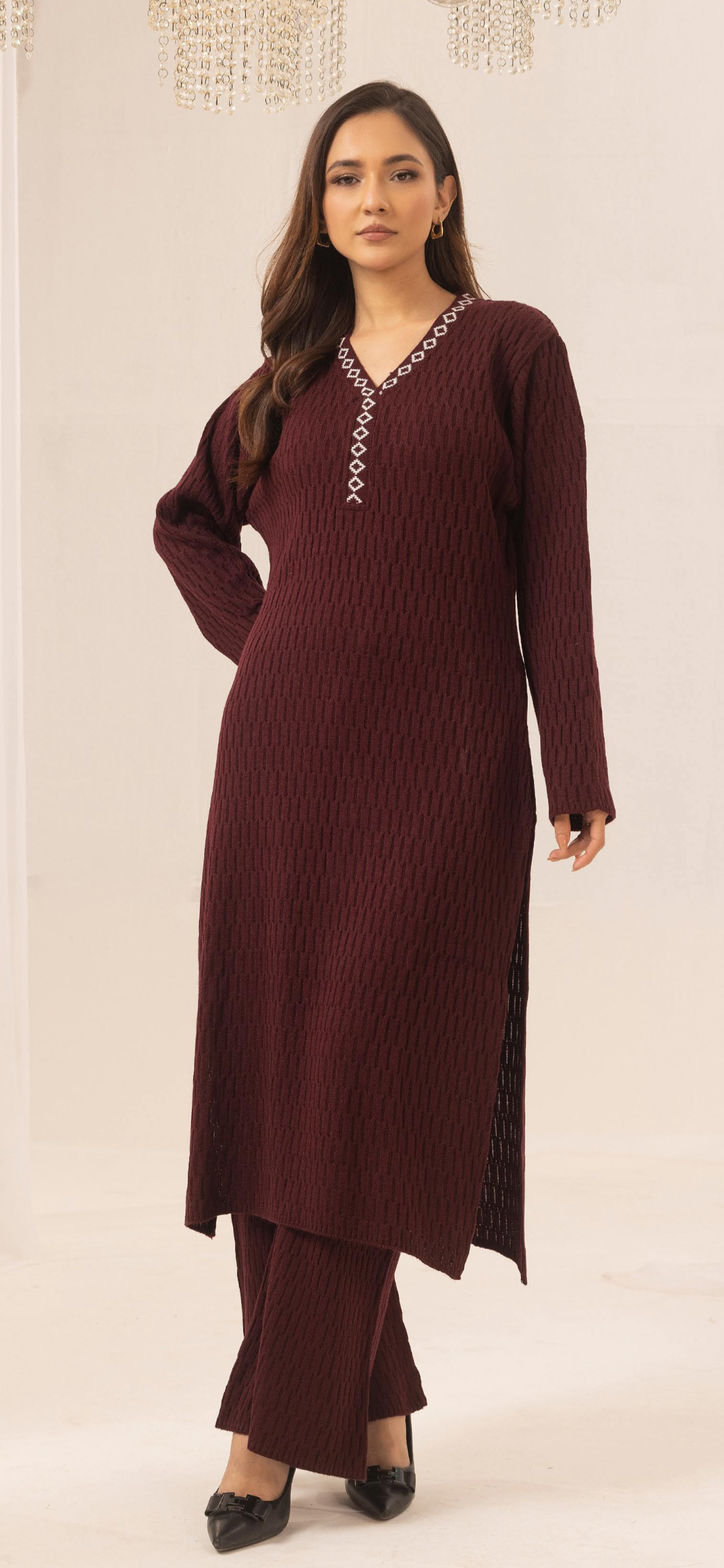 Maroon 2pc CableKnit Shalwar Kameez