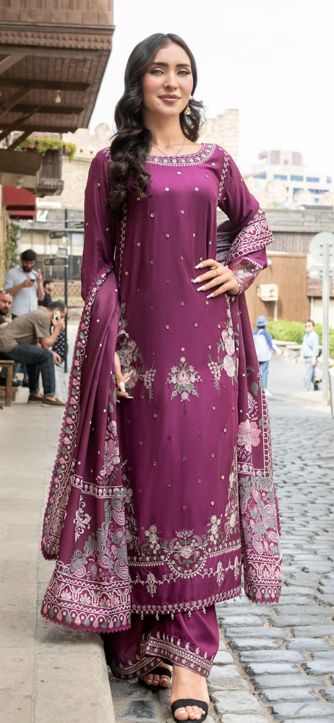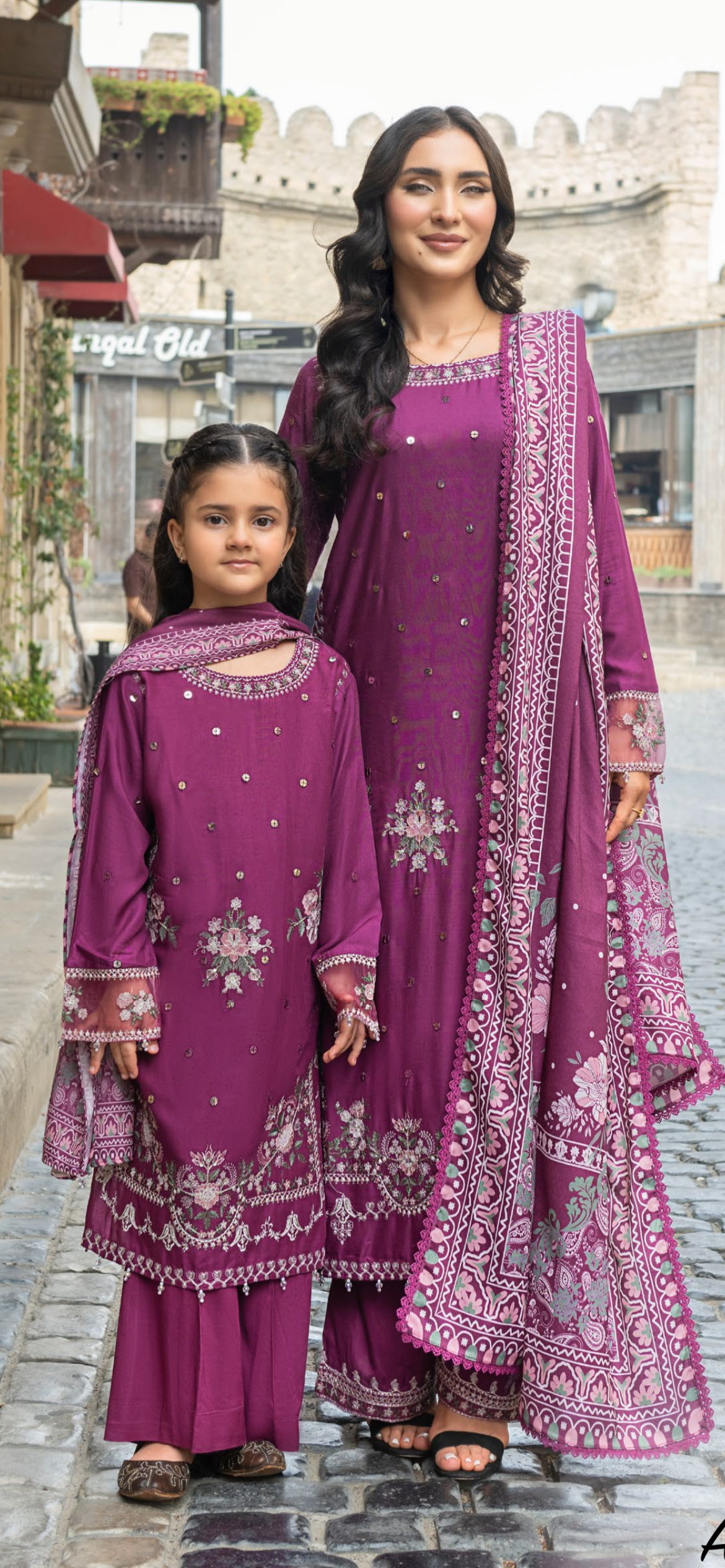 Plum 3pc Mother & Daughter Winter Linen Suit