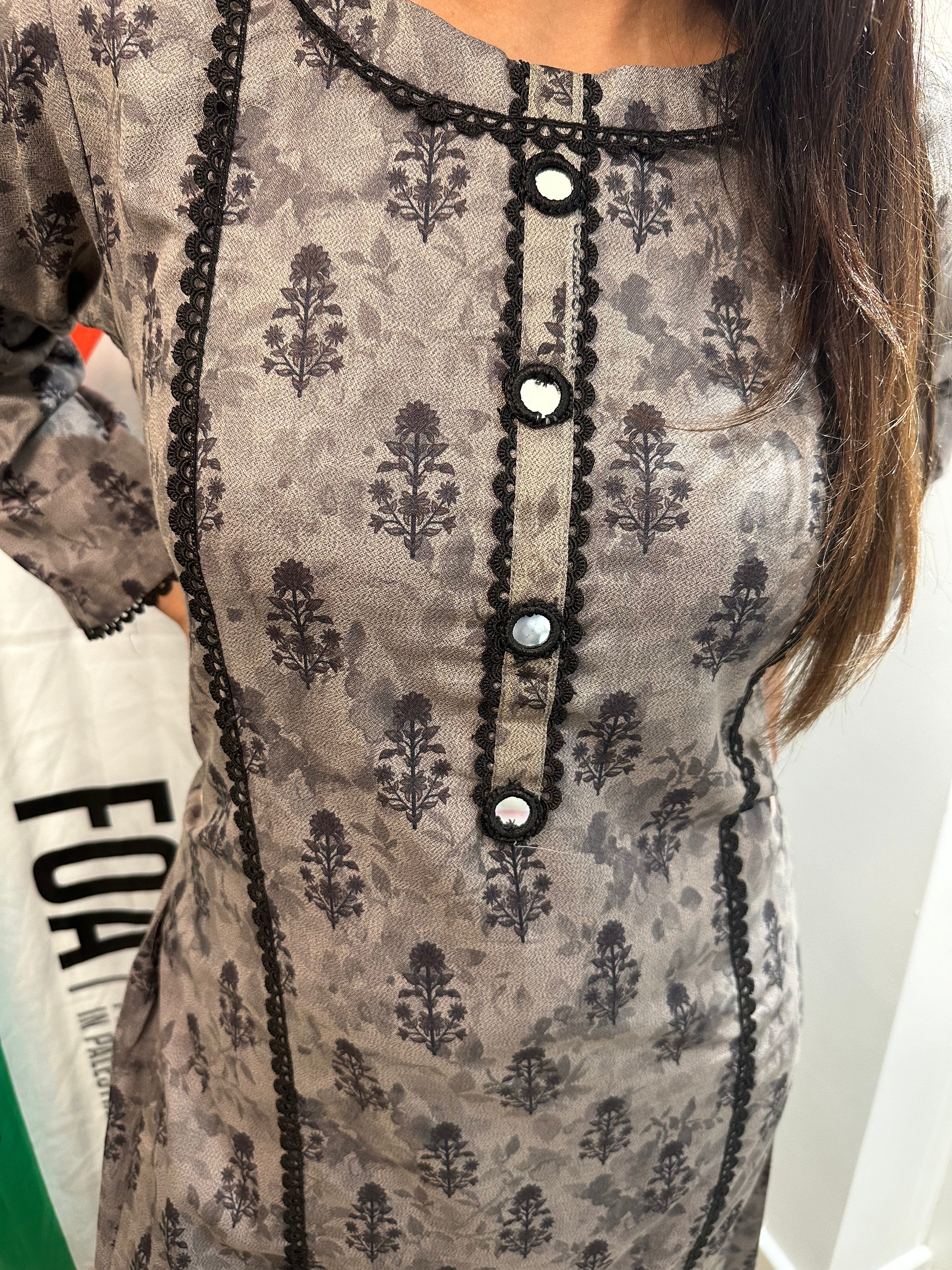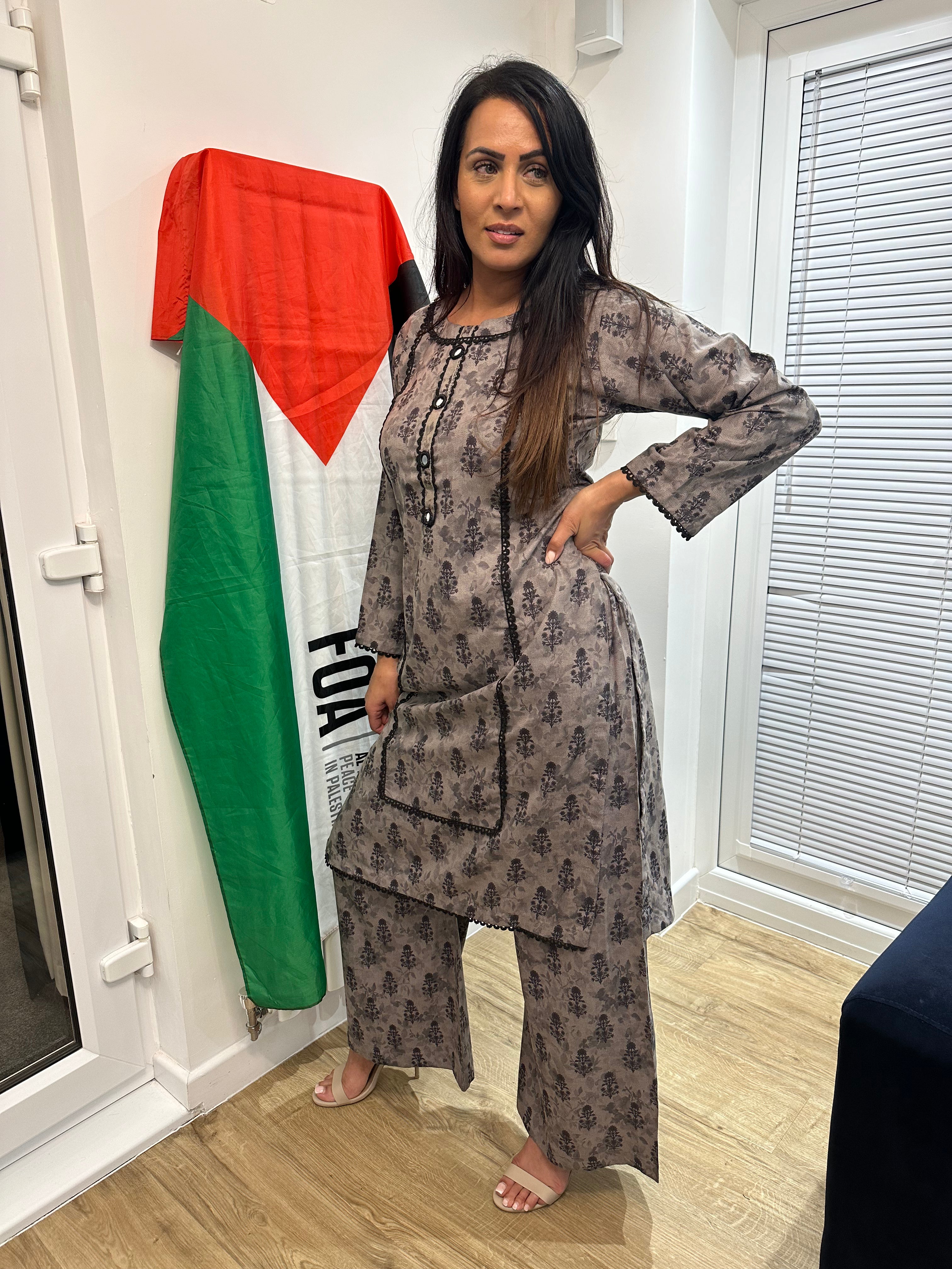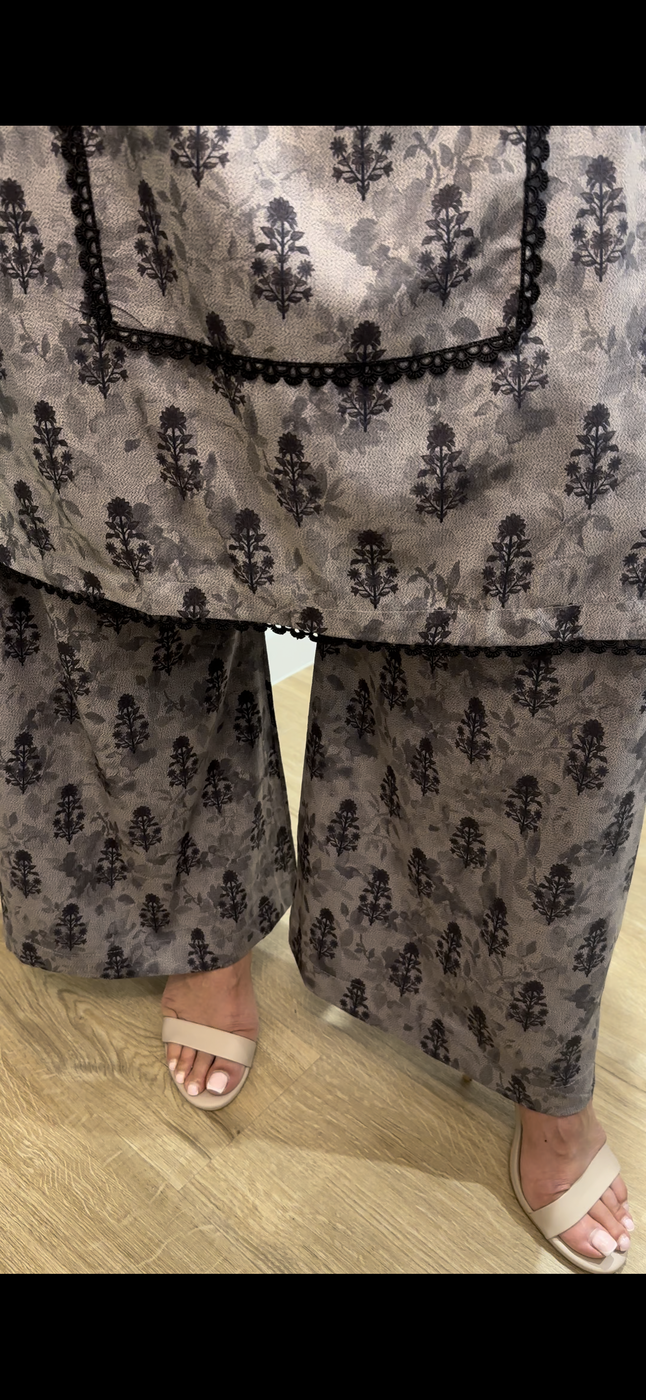 Floral Khaddar 2pc fully printed suit with Lace detailing and Palazoo Trousers