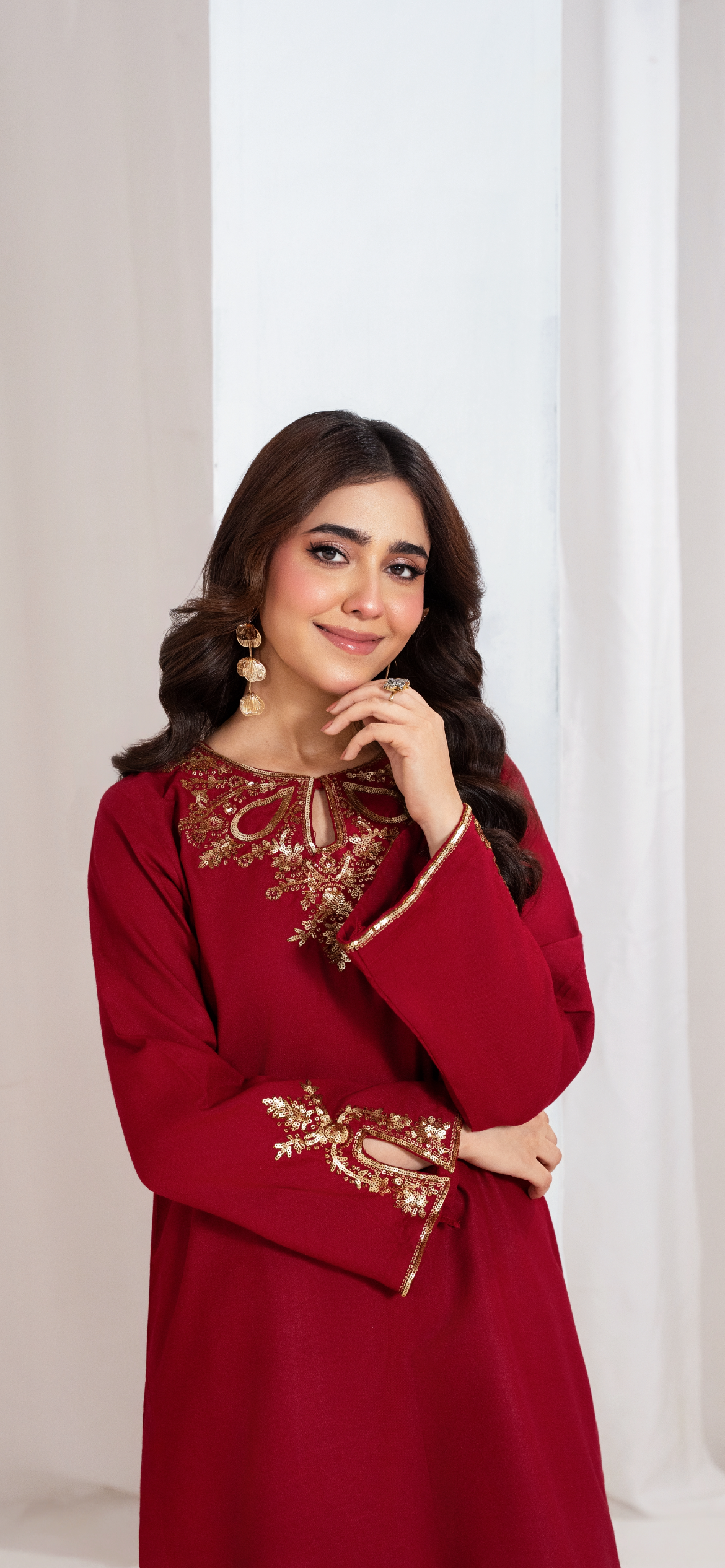Lovely Dhanak 2pc with statement Detail to the front & Sleeves of the shirt