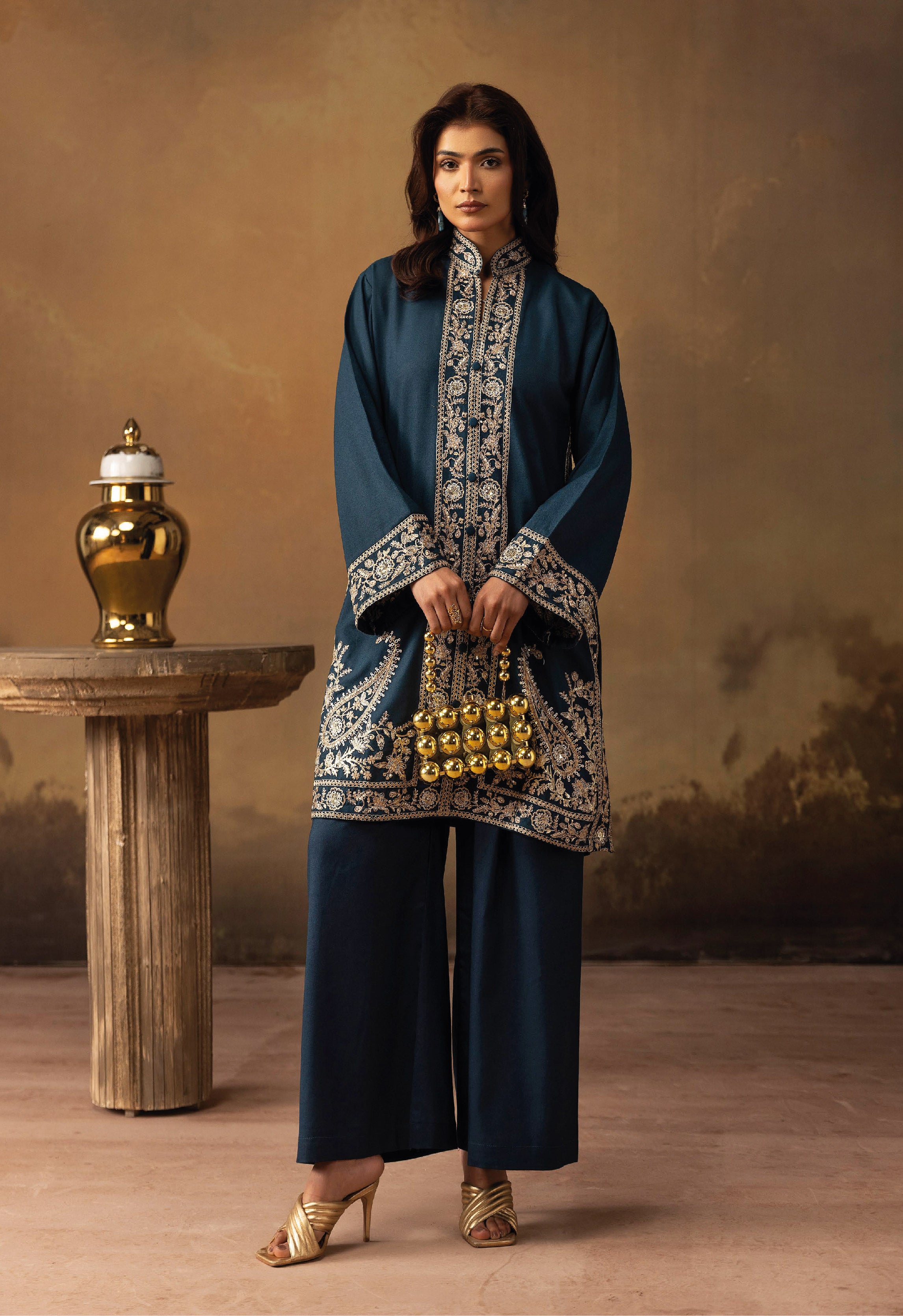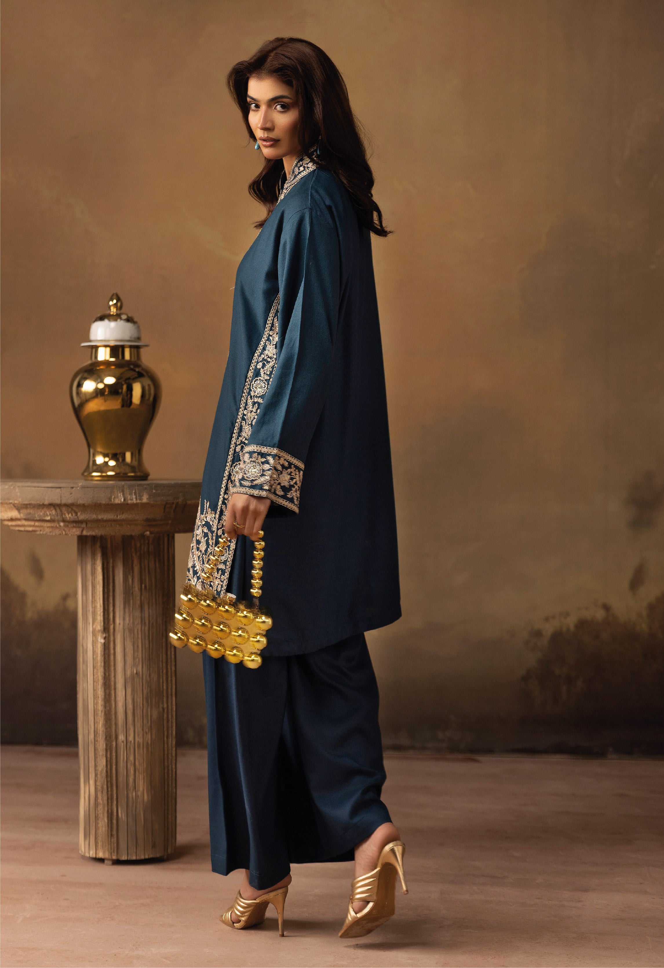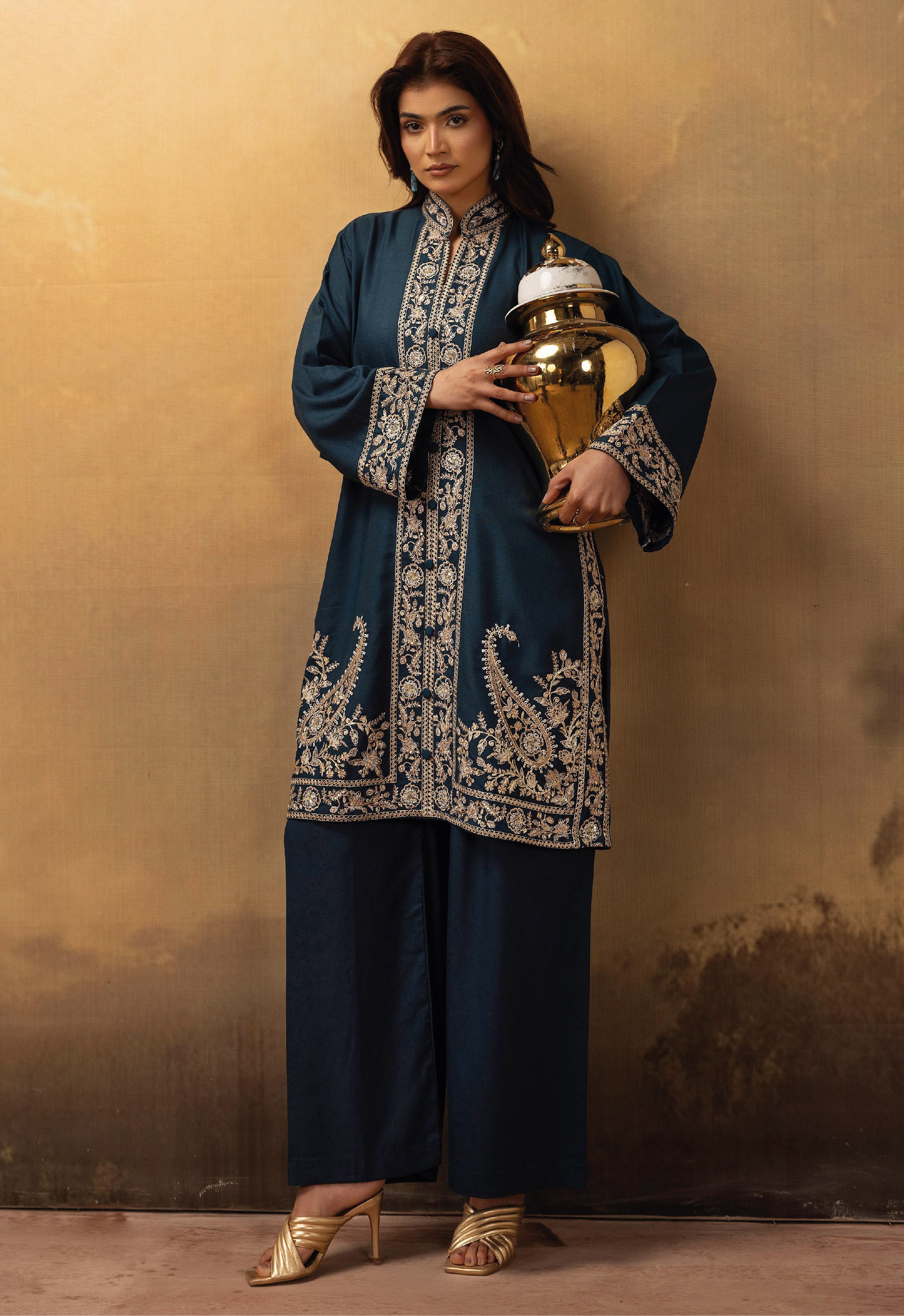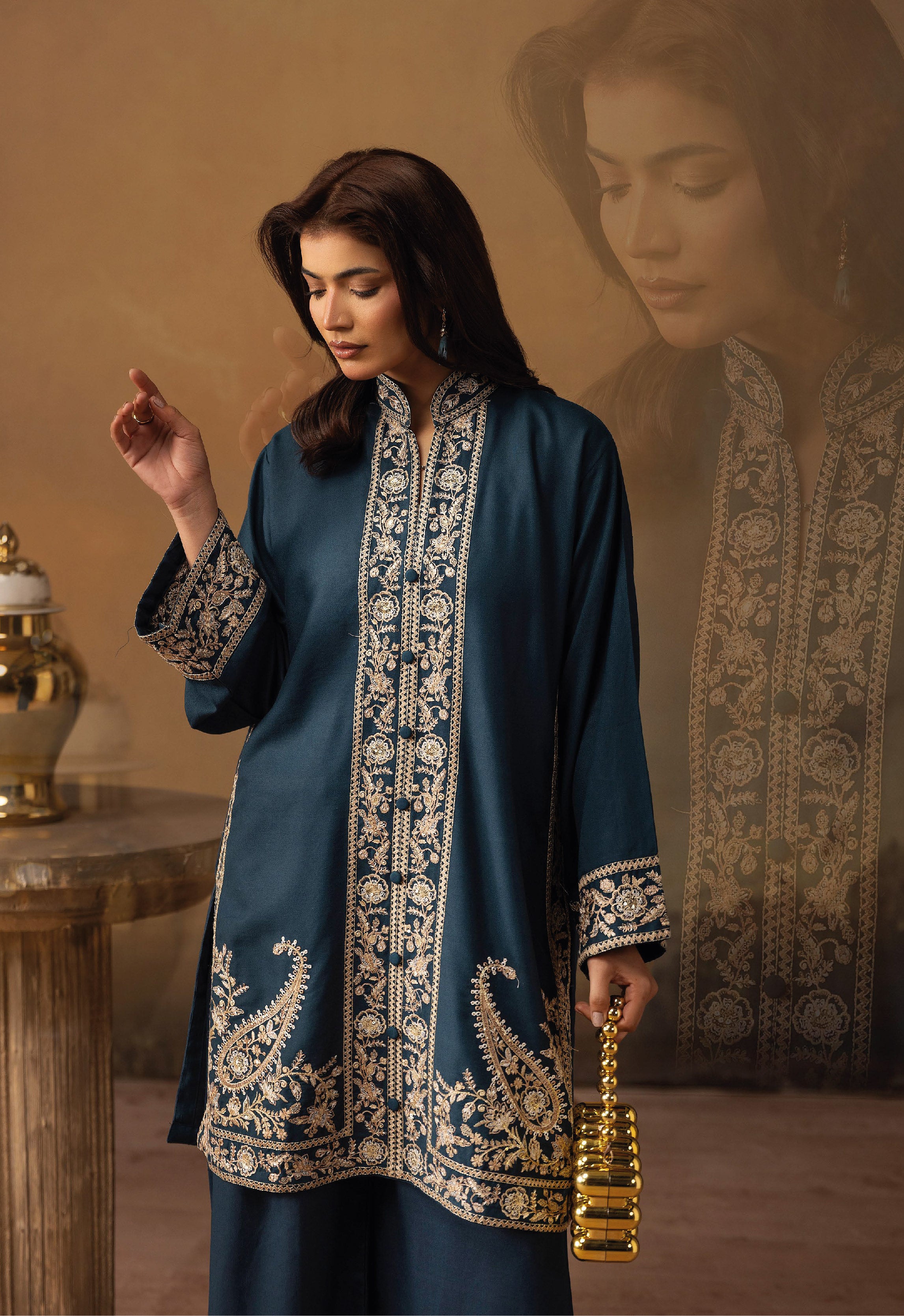 Lovely Dhanak 2pc with statement Embroidery Detailing to the front & Sleeves of the shirt